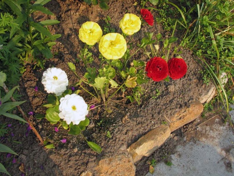 Пересаживать растения в сад можно только после полного отступления морозов. Выращенные таким образом ранункулюсы будут цвести только через год после высадки в открытый грунт.