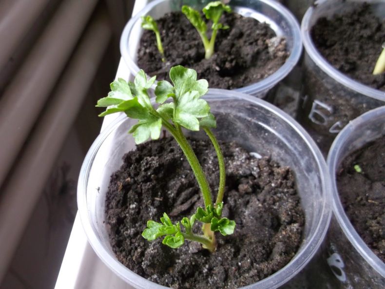 После всхода ростков, через 2-3 недели после посева, нужно убрать с емкости пленку. Рассадку цветов по отдельным горшкам следует производить после появления первой пары листочков.