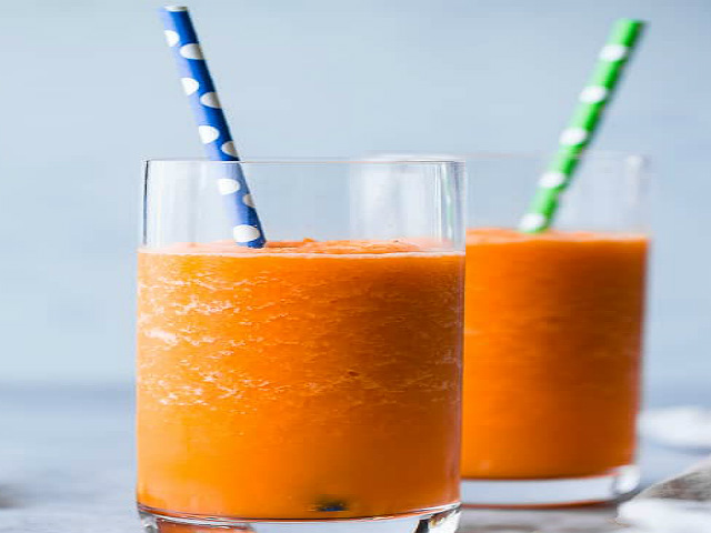 Следующий шаг – добавление цитрусового сока и меда. Включите блендер на несколько секунд. Разлейте полученный напиток по бокалам. При желании можете украсить смузи дольками фруктов или декоративными зонтиками.