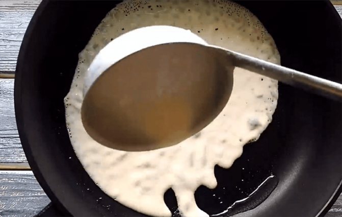 На смазанную растительным маслом, хорошо раскаленную сковороду наливаем тесто половником.