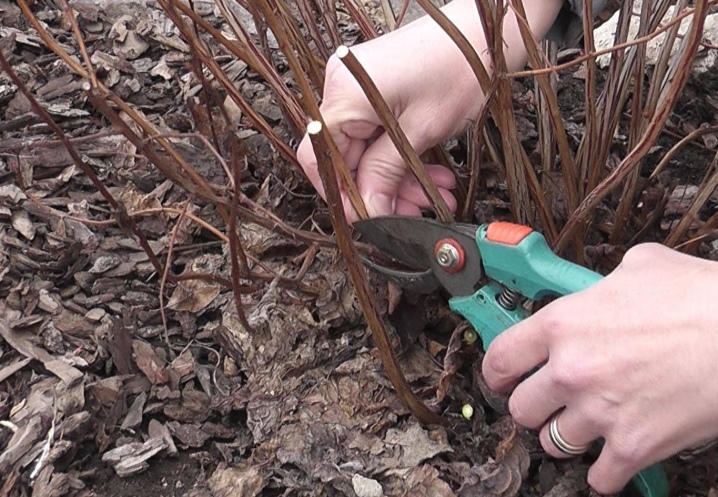 Культура быстро развивается. Поэтому за короткое время она может образовывать большое количество побегов. Чтобы улучшить внешний вид куста, помочь ему обновиться, нужно подрезать ветви. Делают это в конце осени. Весной удаляют также побеги, которые подмерзли за период зимовки.