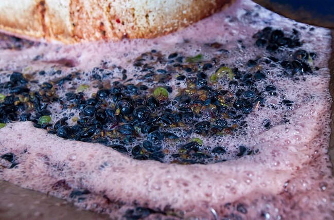 Чача из винограда готовится без промышленных дрожжей. т. к. вызывающие брожение дикие грибки находятся на кожуре ягод. Поэтому сырье перед измельчением и давкой нельзя мыть.