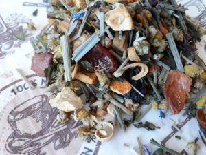 | Связанный | Композиция из листьев зеленого чая, связанных с травами и цветами |