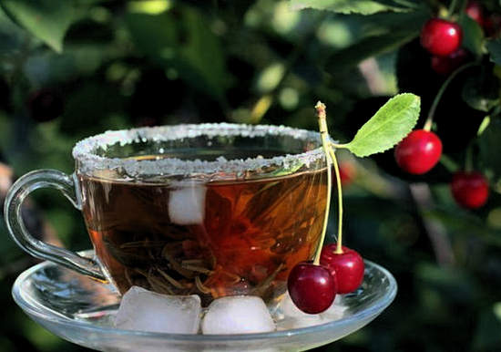 Вишневый чай с добавлением листьев малины помогает быстро снизить температуру при простуде