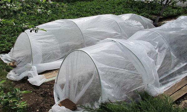 При посадке саженцев в открытый грунт всегда есть риск того, что растениям будет не хватать тепла, особенно в ночное время. В этом случае решить проблему дополнительного обогрева посадок помогут временные тоннельные укрытия. Их устанавливают на грядки после посадки растений или непосредственно перед ней. Высаживают перец под пленку или используют в качестве укрывающего материала агроволокно.