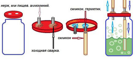 - В сухопарник из банки вставляются трубки необходимого размера.