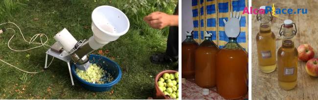 Измельченные яблоки вместе с соком, жмыхом и мякотью складываем в тару, подходящую для брожения. Наполняем не более, чем на 3/4, оставляя место для бурления и пенообразования.