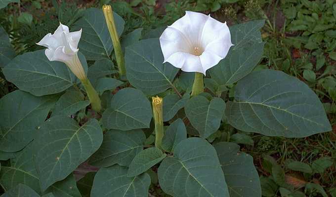 Цветок дурман ядовит, но его название является ботаническим курьезом: в переводе оно означает «дурман безвредный».