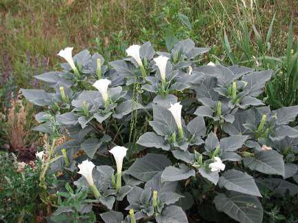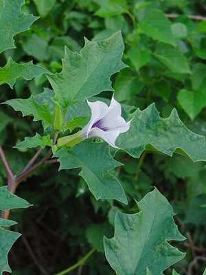 - Дурман индейский (Datura Innoxia) – имеет белые цветы, сероватые листья и очень колючие плоды. Индейцы Колумбии и Америки применяли цветок, как средство с усыпляющими и вызывающими видения свойствами.