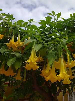 - Цветок похожий на дурман желтого цвета как называется? Это сорт растения датура индийская — Балерина. Делится еще на два подсорта: Медея и Flore pleno. Медея распускается белоснежными цветами, длиной 15–20 см. Flore pleno имеет махровые пурпурные цветы, покрытые белым крапом;