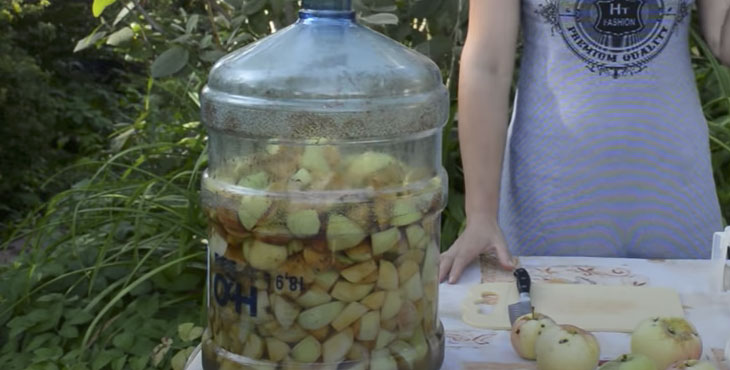 После этого яблочная масса с сахаром перемешивается. Поверх горлышка натягивается марлевая ткань. Получившаяся смесь отправляется в сухое теплое место на 4-6 суток для настаивания.