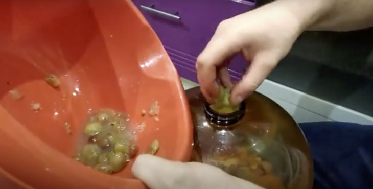 После этого из перебродившей массы выжимается сок и переливается в другую стерилизованную емкость. Поверх надевается резиновая крышка с 2 проделанными с помощью иглы небольшими отверстиями.