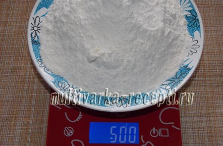 Просеять и отмерять 500 грамм муки. Количество муки может понадобиться меньше или больше указанного количества.