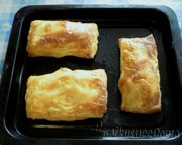 Как только пирожки хорошо зарумянятся и станут слоёными, достаньте их из духовки и остудите.