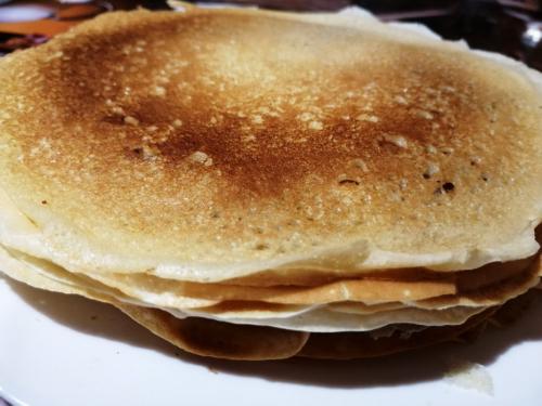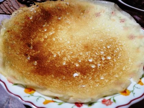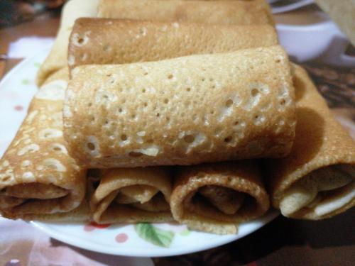 Единственное, на что хочу обратить внимание, сильно дырявые блинчики, как на фото, старайтесь не делать. При свёртывании такие блины могут разорваться