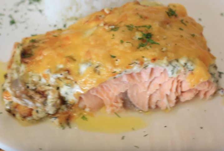 Горбуша с ананасом и сыром, запеченная в духовке под сырной корочкой