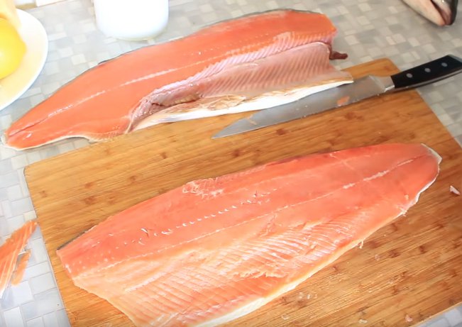 - Основной продукт почистить и разделать на стейки, замариновать.