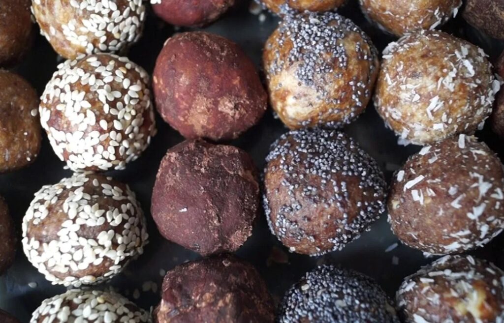 - Сладкую густую массу набираем чайной ложкой, формируем шарик и аккуратно обваливаем в смеси сыпучих.