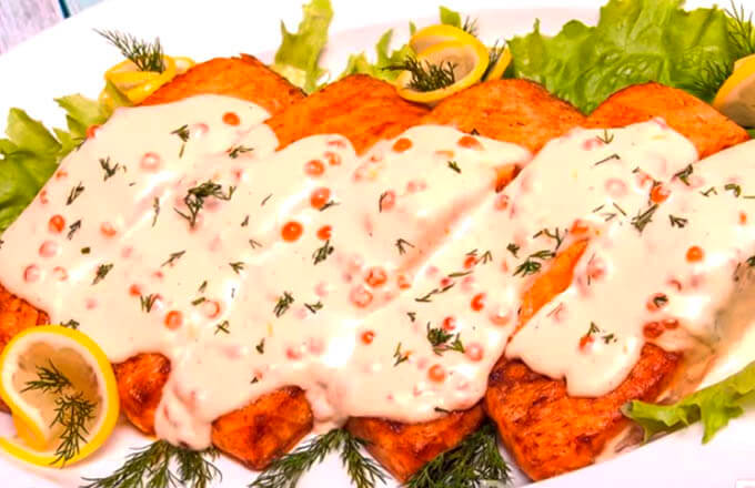 Праздничный рецепт форели под сливочно-икорным соусом