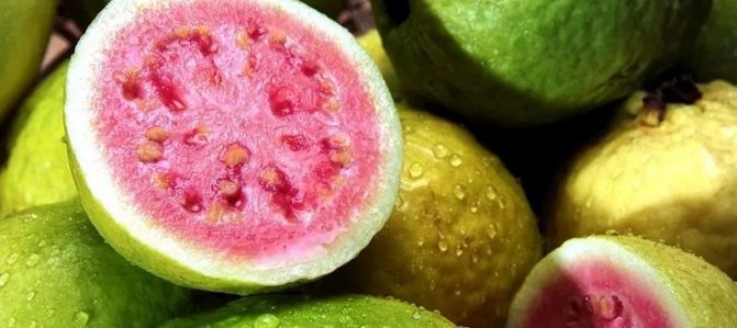 Гуава – уникальный продукт, вкусовые качества которого сложно описать. Это сочетание малины с хвоей. А вот земляничная гуава сочетает в себе вкус ананаса, земляники. Наиболее вкусные, сочные, ароматные плоды – спелые.