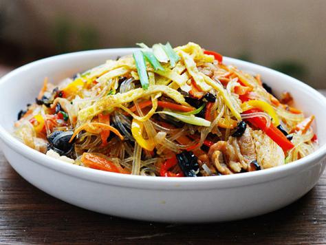В угощения из этой лапши обычно добавляют большое количество пряностей и специй, это придает фунчозе пикантный и необычный вкус.