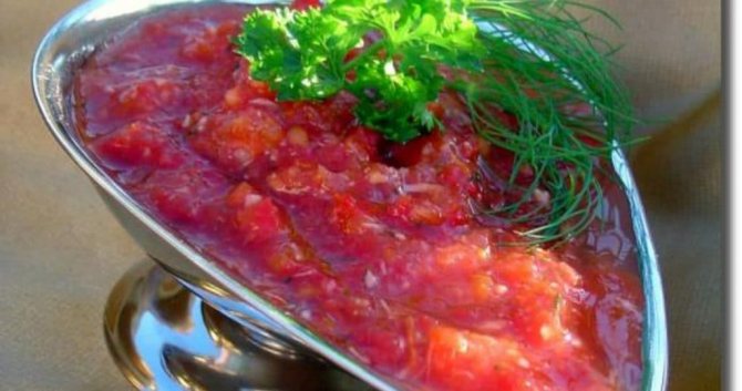 Горлодер из помидор с чесноком и хреном