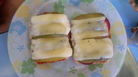 - Ставим мегабутерброд в микроволновку до полного расплавления сыра.