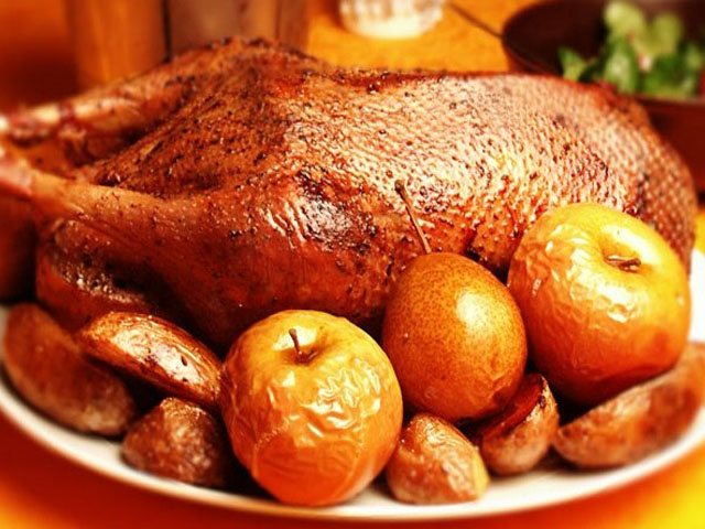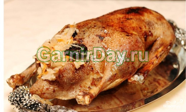 В качестве начинки могут выступать рис с изюмом, гречневая каша с грибами, картошка или тушеная капуста. Но самый праздничный гусь «требует» кисло-сладких яблок.