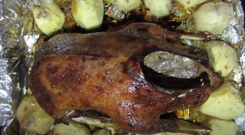 Сочный гусь в духовке в фольге, маринованный соевым соусом