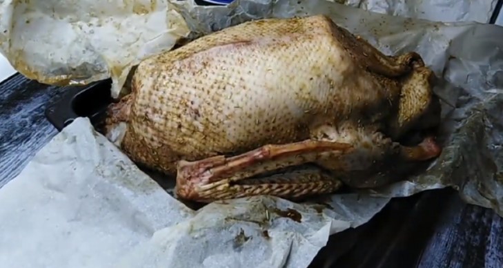 1. Первым делом стоит полностью разморозить гуся. Трехкилограммовая тушка потребует почти половину суток в условиях комнатной температуры.