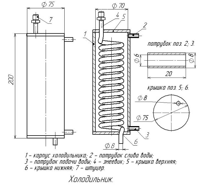 Чертеж змеевика и корпуса для самостоятельного изготовления