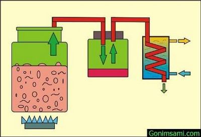 В этой схеме самогонного аппарата спиртсодержащая брага доводится до кипения в герметично закрытой ёмкости к которой подключен змеевик. В качестве ёмкости чаще всего используются скороварки и молочные бидоны (баки, фляги) на 25 или 38 литров. Можно приспособить под это дело и обыкновенную кастрюлю, обеспечив герметизацию её крышки, как здесь, например. Закипев, пары браги отводятся в подключенный к аппарату змеевиковый холодильник (змеевик), где охлаждаясь за счет постоянной циркуляции снаружи змеевика холодной воды, конденсируются и стекают в приготовленную ёмкость в виде самогона.