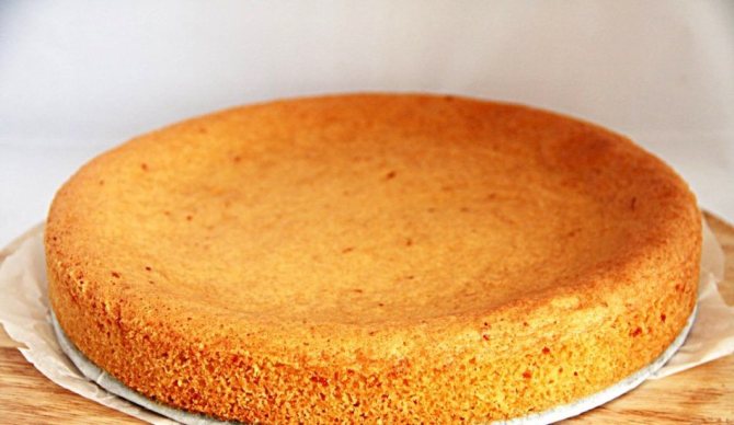 - Когда корж остынет, обрезаем его. Нам нужен корж по диаметру чуть меньше, чем разъемная форма, в которой будет собираться торт.