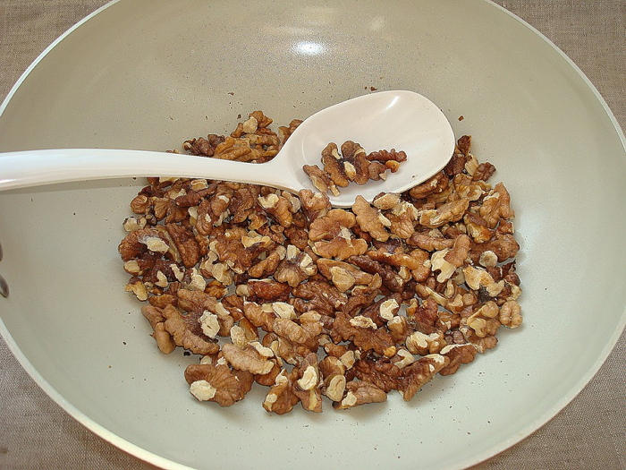 - Полученные орешки опять обжариваем на сухой сковороде в течение четверти часа. Мешать их нужно постоянно, иначе продукт пригорит.