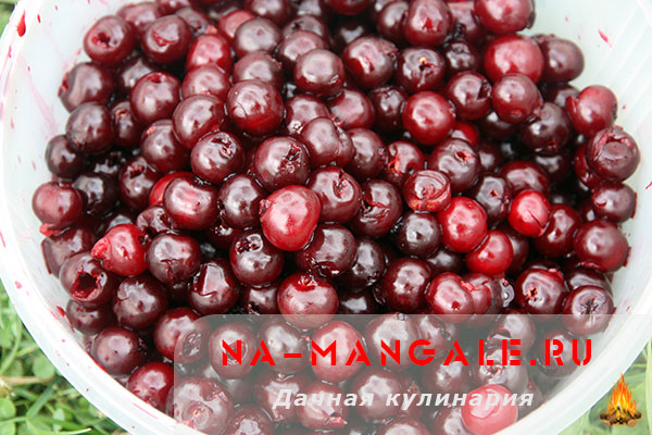 - Вишни хорошенько помыть и отделить от плодоножек (если вишня замороженная, предварительно разморозить).