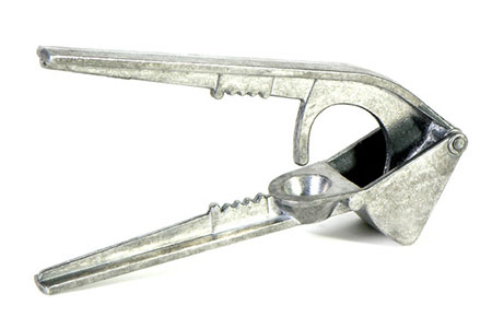 Не каждый знает, что круглое отверстие на металлическом чесночном прессе прекрасно подходит для процедуры выдавливания косточек из вишни. На противоположной ножке предусмотрен стержень, который входит аккурат в круглый вырез.