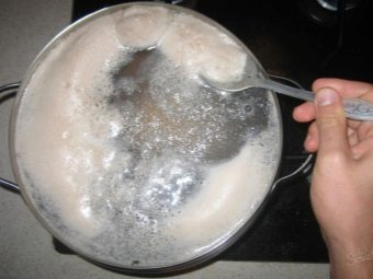 - На сильном огне довести до кипения, снять образовавшуюся пену.