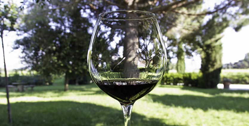 Наполненный вином бокал нужно пошатать и тут же остановить. Стенки фужера покроются пленкой. От того, насколько долго она сохранится на стенках посуды, зависит качество красного вина. Чем дольше пленка остается на них, тем вино лучше.