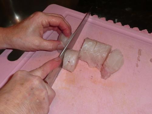 Разрежем налима на порционные кусочки.