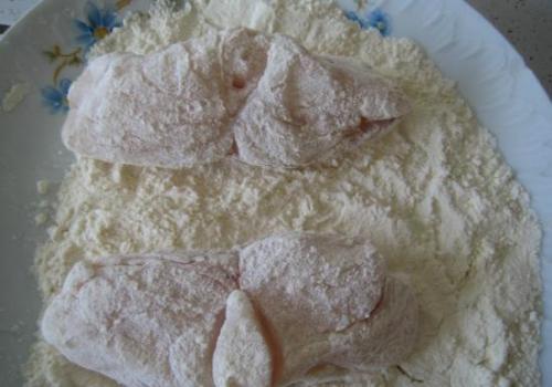 Если будете использовать яйцо — немного взбейте его. Кусочки налима посолить, посыпать перцем с двух сторон. Кисточкой обмажем кусочки яйцом. Потом обваляем в муке.
