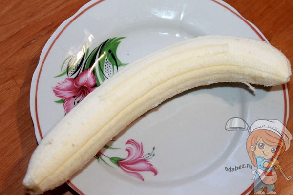 Банан берем спелый красивый, без черных пятен и вмятин. Очищаем его аккуратно, чтобы не повредить.