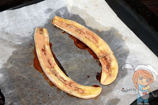 Разогрейте духовку и отправляйте блюдо туда. Печеные бананы в духовке готовятся совсем недолго – около 20 минут. Когда блюдо подрумянится, доставайте его.
