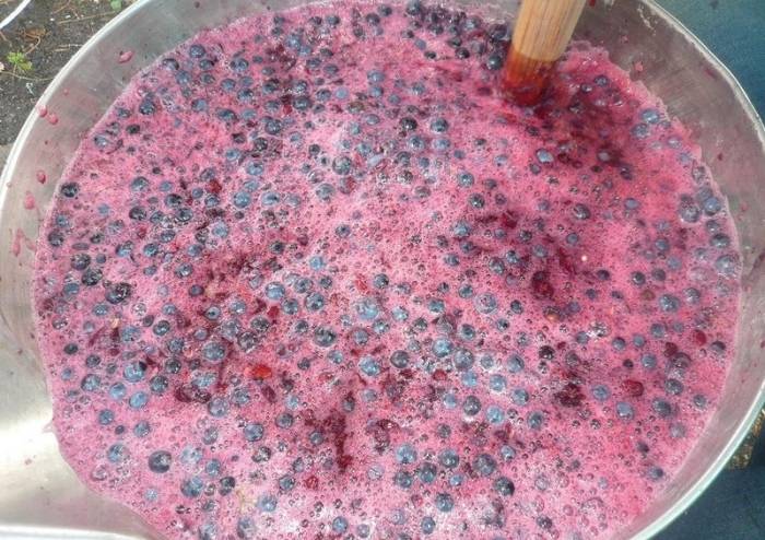 - Сухие ягоды, отдаленные от черенков, раздавите руками или толкушкой в ведре