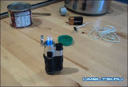 После завершения комплектации приступаем непосредственно к изготовлению: 1) Осуществляем закрепление зажигалки.