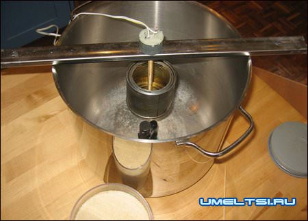 Для успешной работы аппарата вам понадобится контейнер, который будет заполняться сахаром. Этот контейнер будет подвергаться нагреву, при этом сахар будет растапливаться, и вращаться. При вращении через отверстия контейнера будут выбрасываться тонкие нити растопленного сахара. Контейнер необходимо поместить внутри большой кастрюли для локализации выбрасываемых нитей.