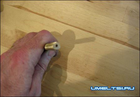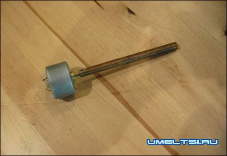 Двигатель соединяется с консервной банкой коротким прутом или трубкой. На концах прута необходимо просверлить по одному отверстию. Одно отверстие предназначено для соединения с валом двигателя, поэтому сверло выбирается соответствующее. После сверления вставьте в отверстие вал и закрепите его каплей суперклея. Для фиксации вала в отверстии можно воспользоваться и стопорным винтом, но это потребует сверления еще одного отверстия и нарезания резьбы, хотя и обеспечит возможность снимать двигатель в случае необходимости. Думайте сами, что вам больше по душе.