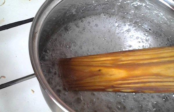 Несколько раз доводим сладкую жидкость до кипения и снимаем с плиты. После нескольких заходов масса начнет темнеть, станет красивого золотистого оттенка, загустеет и потянется за вилкой