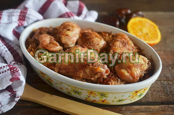 Куриные бедрышки с рисом, в духовке