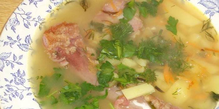 - Подготовить подходящую емкость (казан или кастрюлю), налить 2/3 холодной воды. Сразу же положить в нее суповой набор. Необходимо, чтобы мясо полностью покрывала вода.