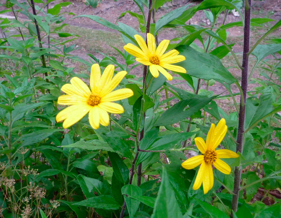- Топинамбур часто сажают в качестве живой изгороди, его высокие стебли служат защитой от ветра и распространения сорняков.